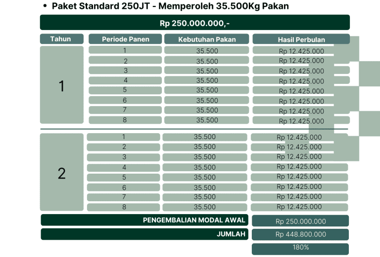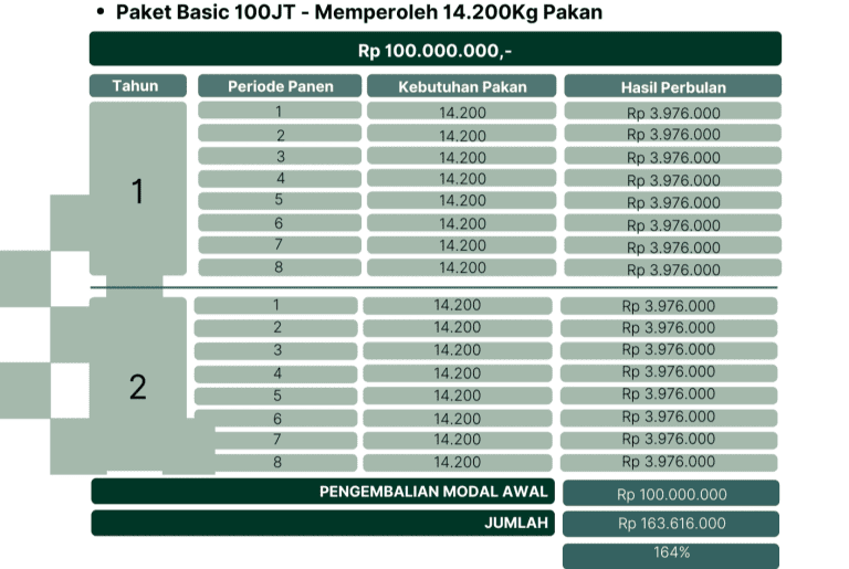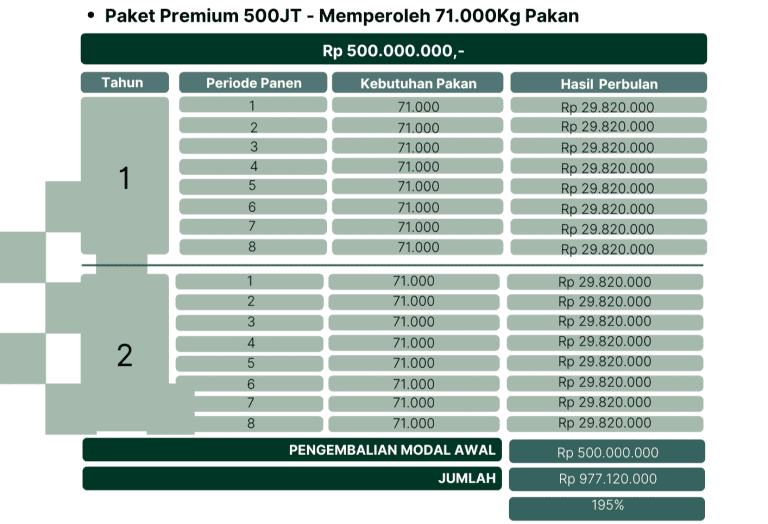 Hasil proyeksi dari periode panen diatas dapat mengalami kenaikan dan penurunan sesuai kondisi market & di lapangan.